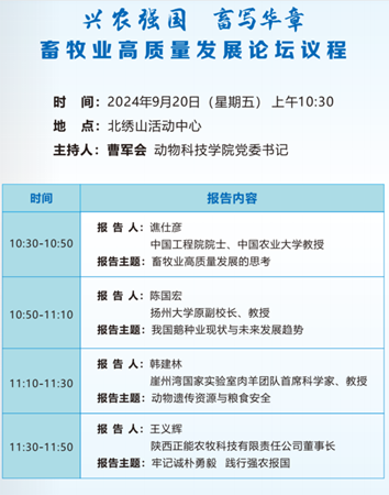 动物科技番摊 将于9月20日在北绣山活动中心举办畜牧业高质量发展论坛,现将具体安排通知如下。